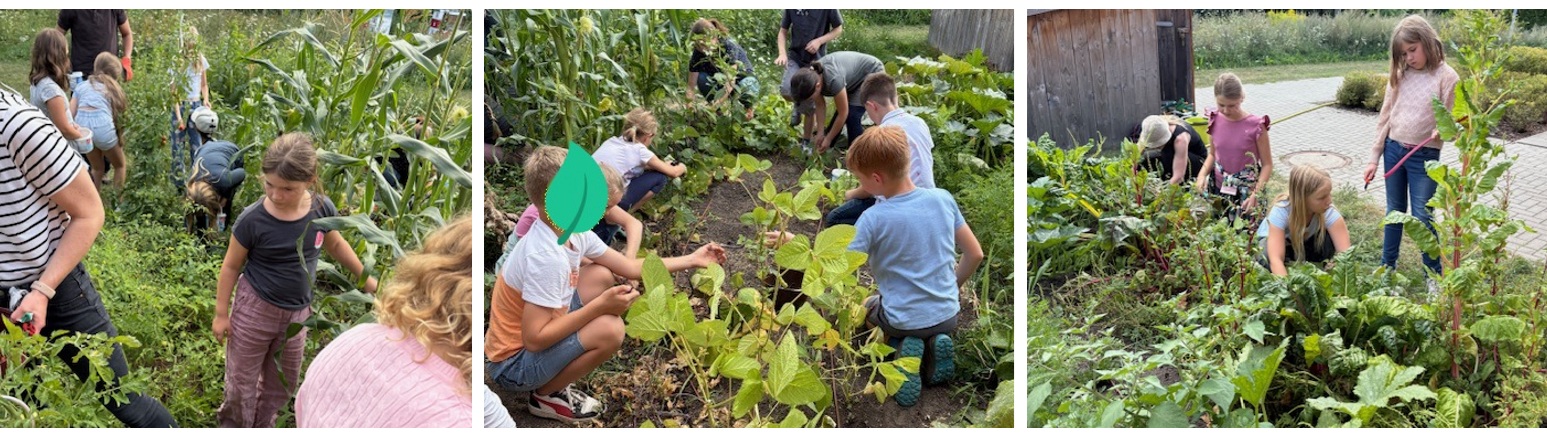 Bei bestem Erntewetter mit 20 ° C und viel Sonne sowie der vereinten Hilfe von Acker-Buddys (Eltern), Frau Wenk, Frau Inderbieten und den tatkräftigen Schüler*innen aus der Klasse 4c und der SchulAcker-AG wurde am Donnerstag, 21.08.25 innerhalb kürzester Zeit das Gemüse geerntet.
